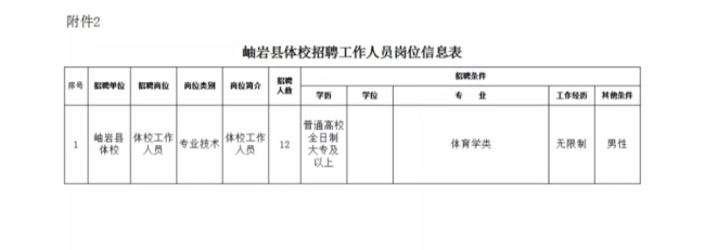附件: 2.《岫巖縣體校招聘工作人員崗位信息表》